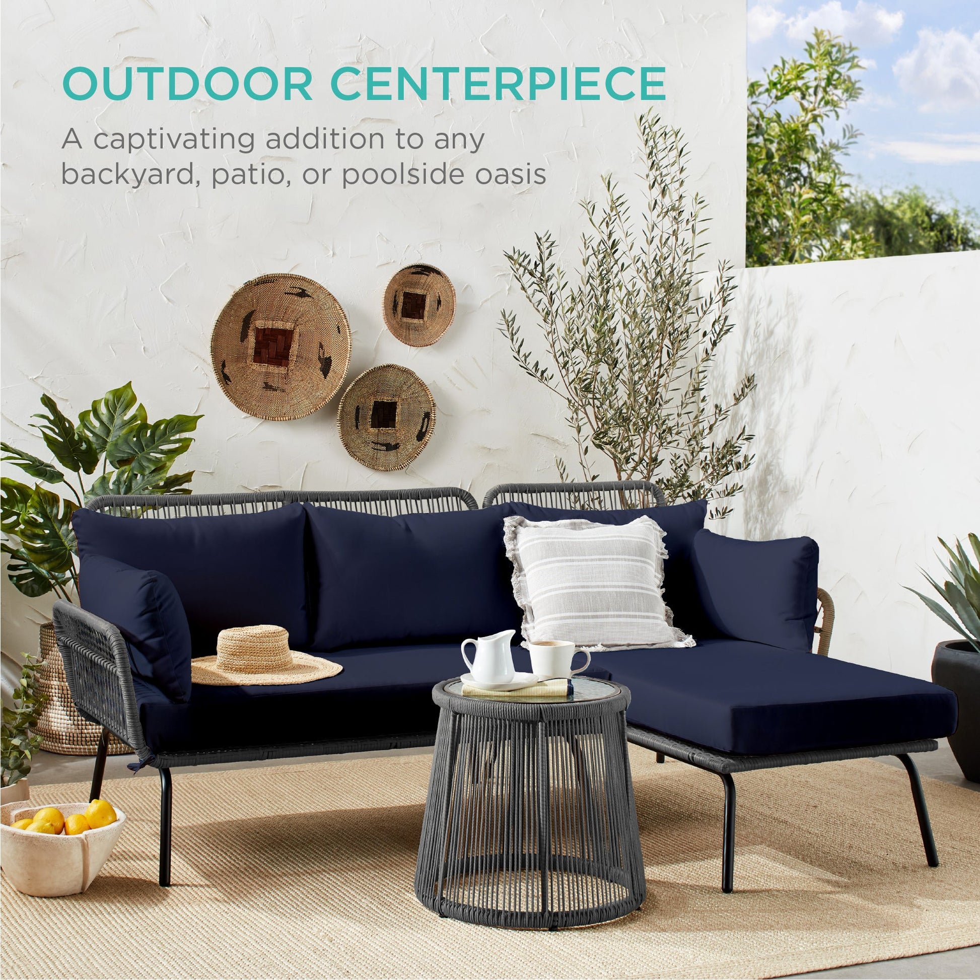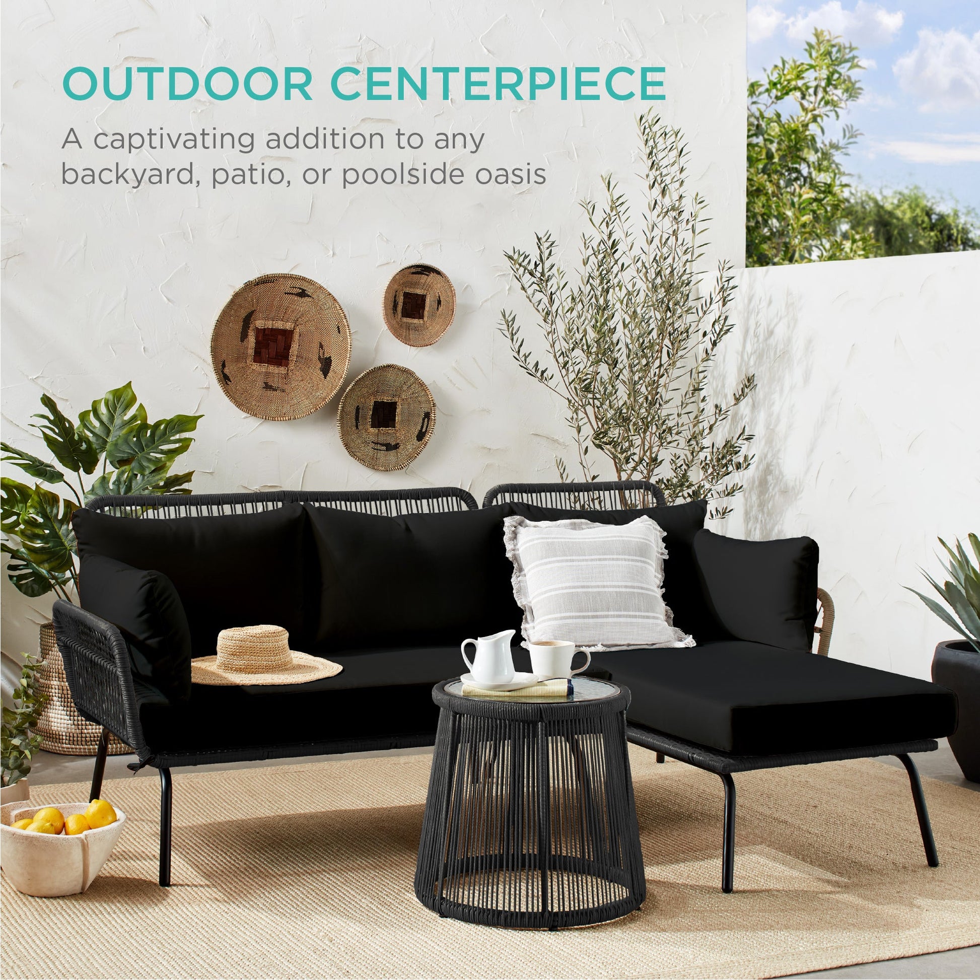 Rope Woven Sectional, L-Shape Sofa Set w/ Detachable Lounger, Table
