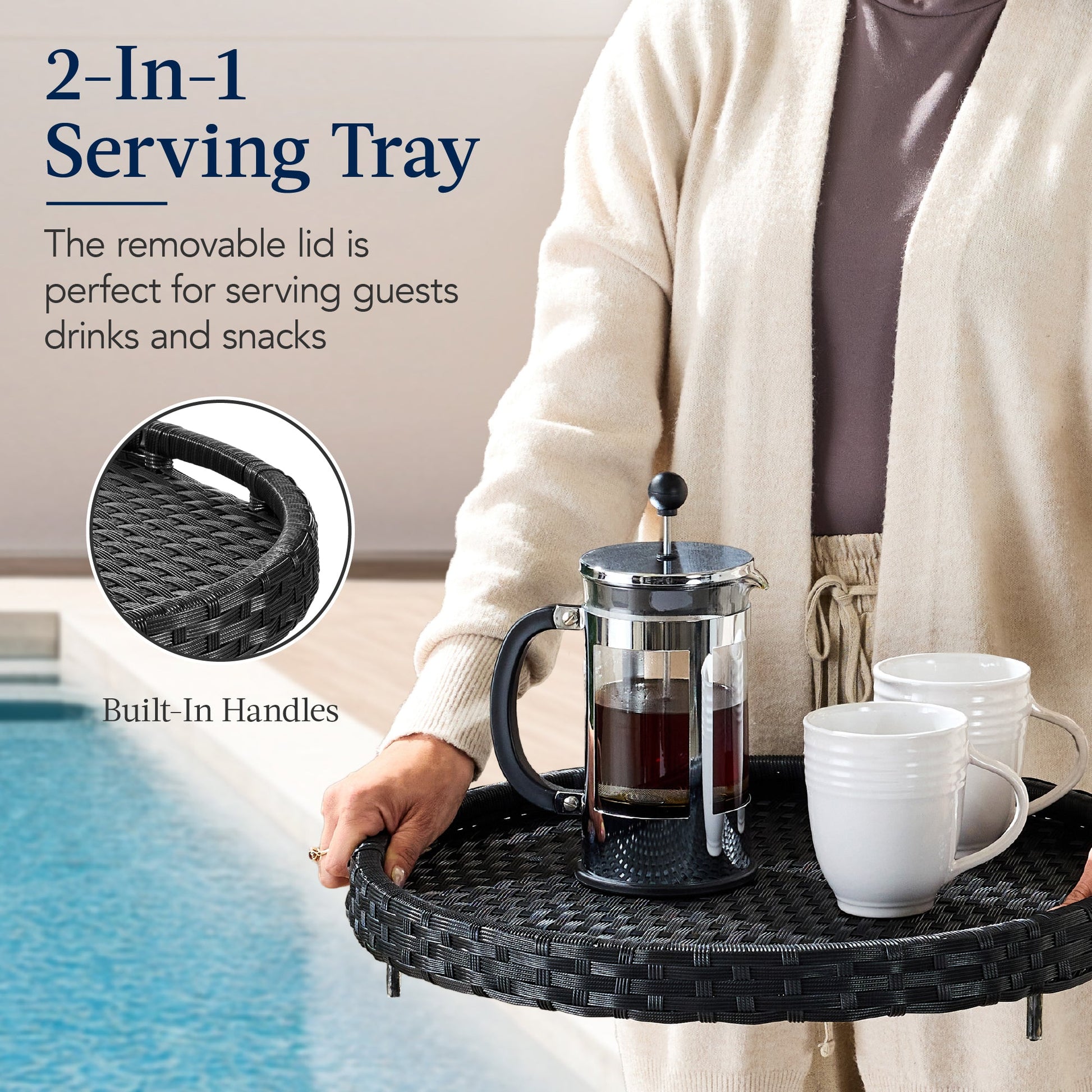 Round Wicker Ottoman, Multipurpose Furniture w/ Removable Cushion