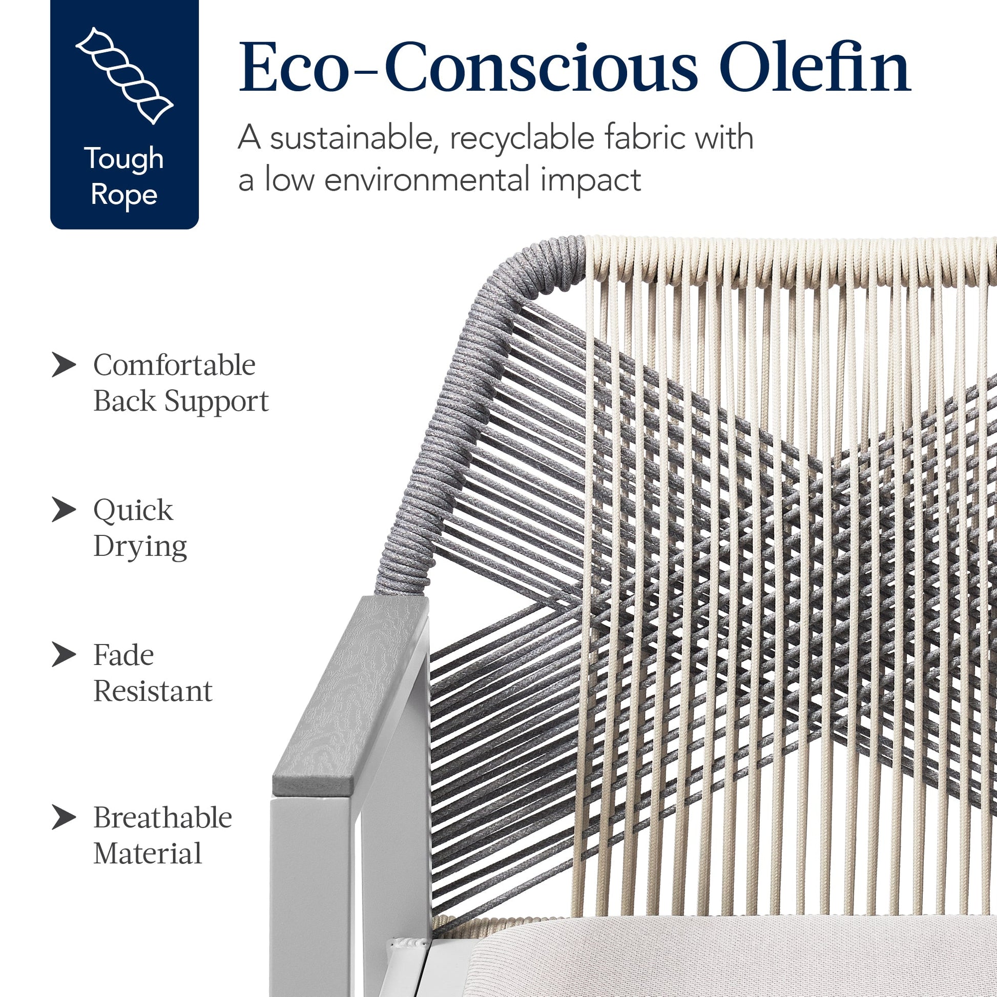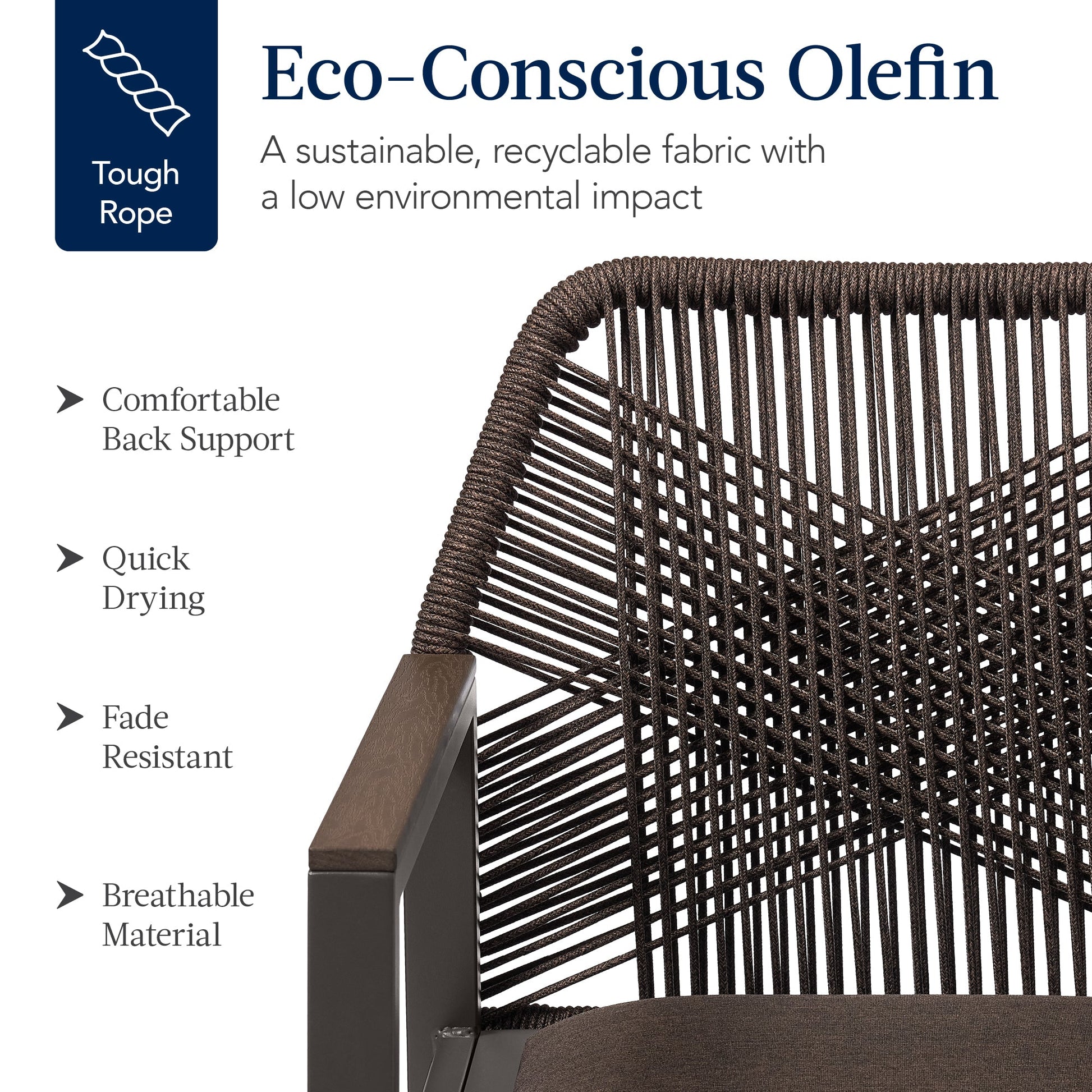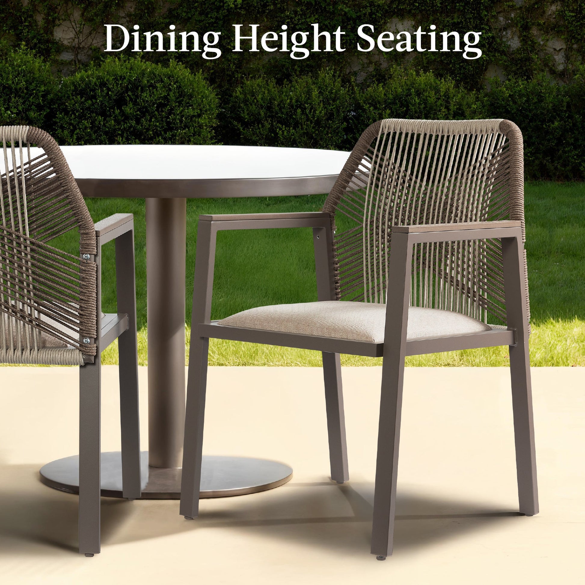 Set of 2 Indoor/Outdoor Aluminum Dining Chairs with Arms All-Weather Rope