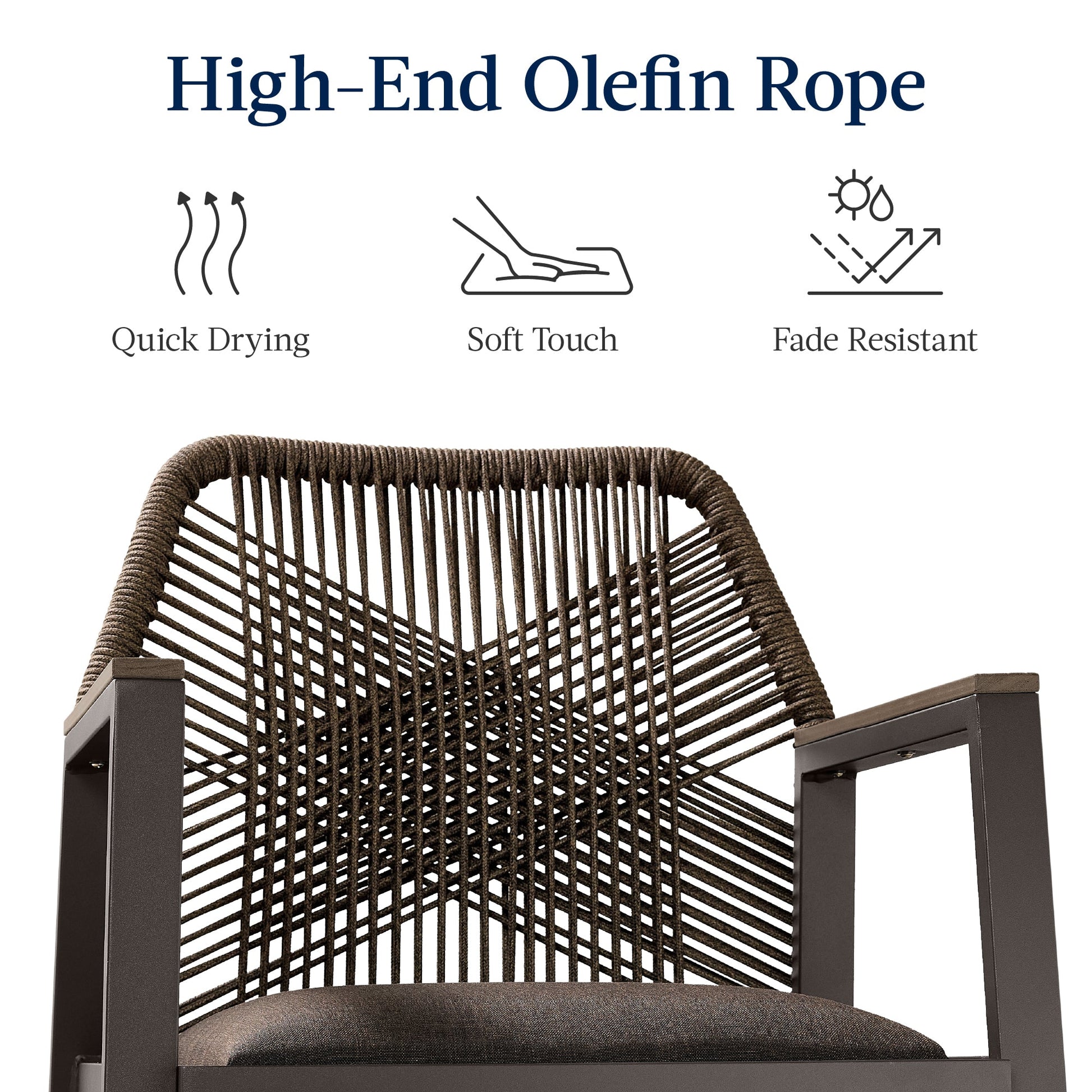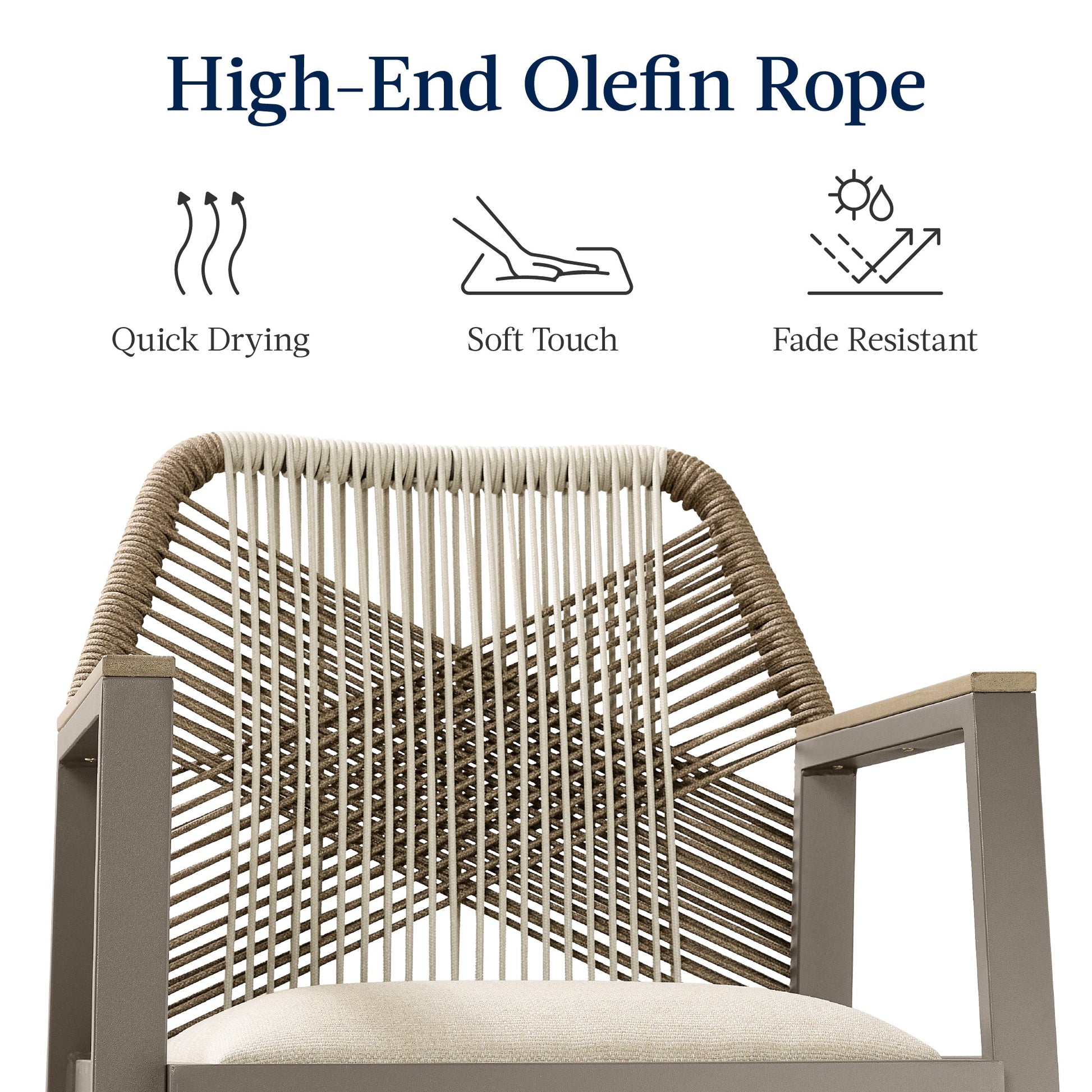 Set of 2 Indoor/Outdoor Aluminum Swivel Barstools with Arms All-Weather Rope