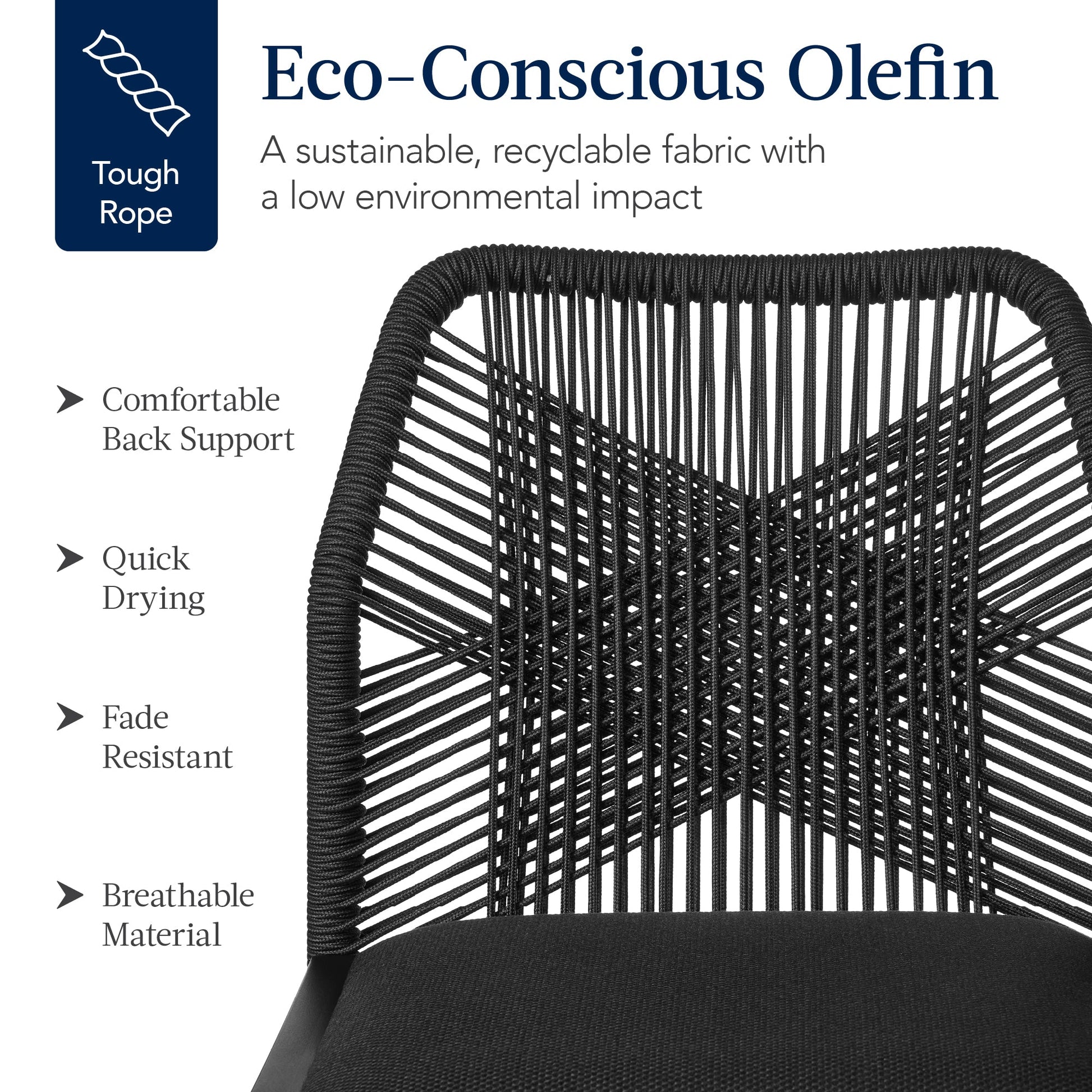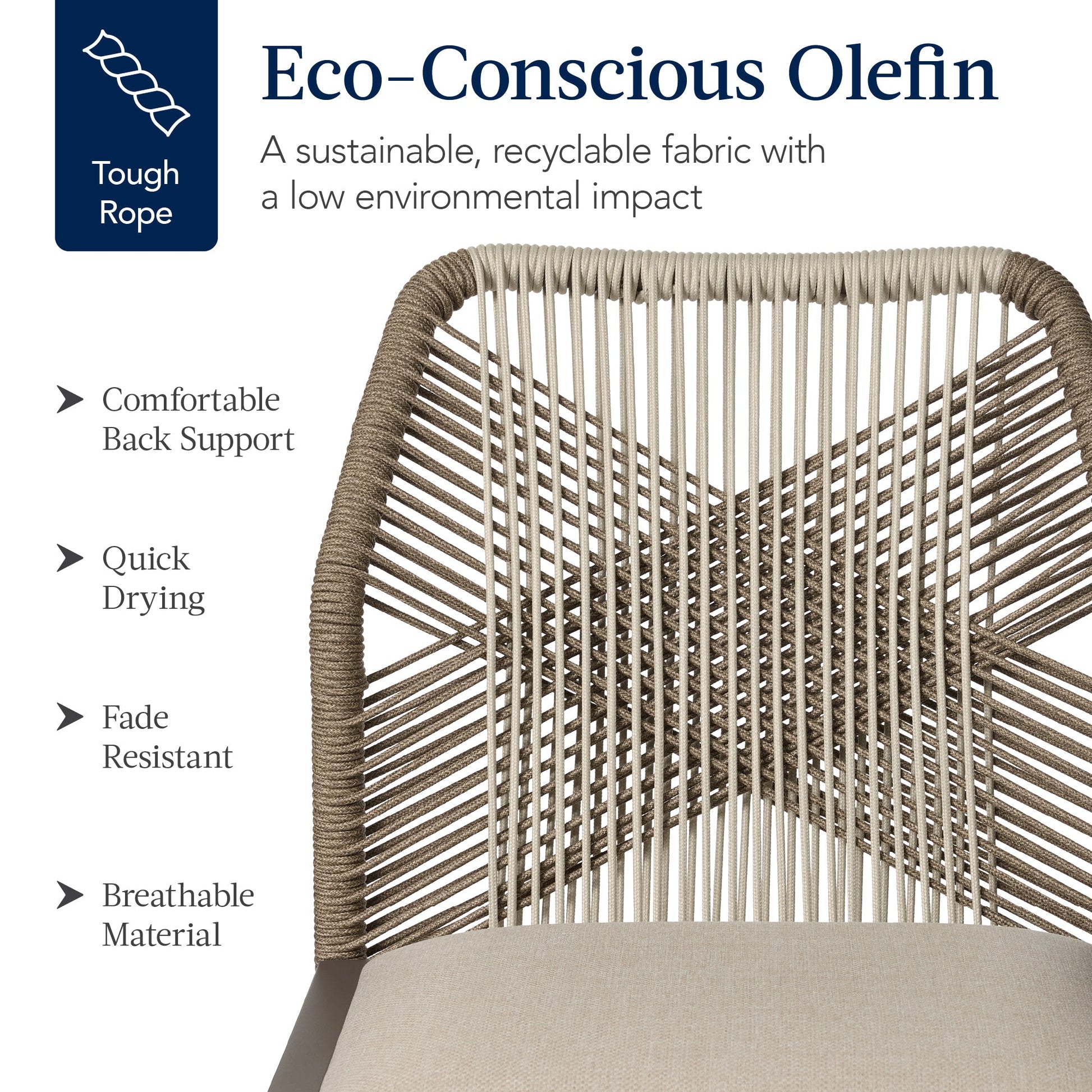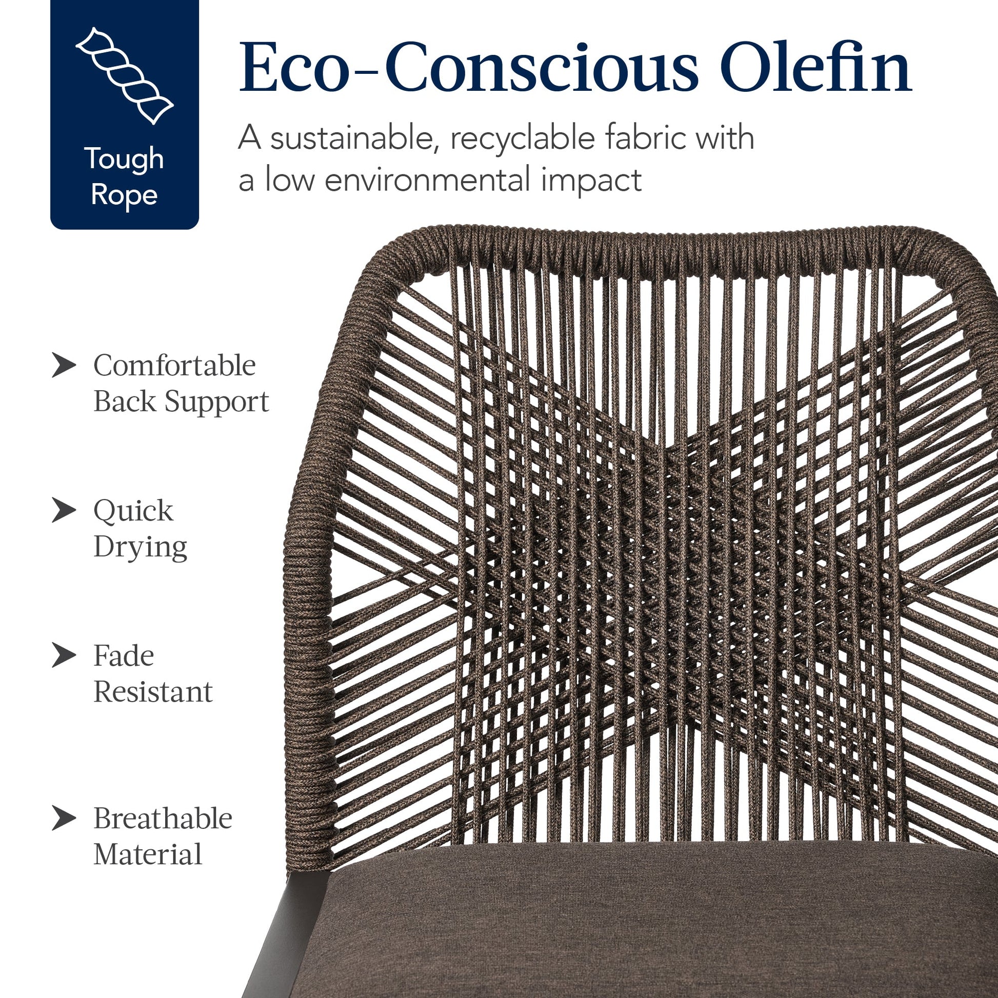 WOVEN ROPE DESIGN: Made with weather-resistant olefin material in a unique "X" pattern, the woven backrest features a gentle curve for enhanced lumbar support, while the built-in footrest helps reduce leg tension while seated