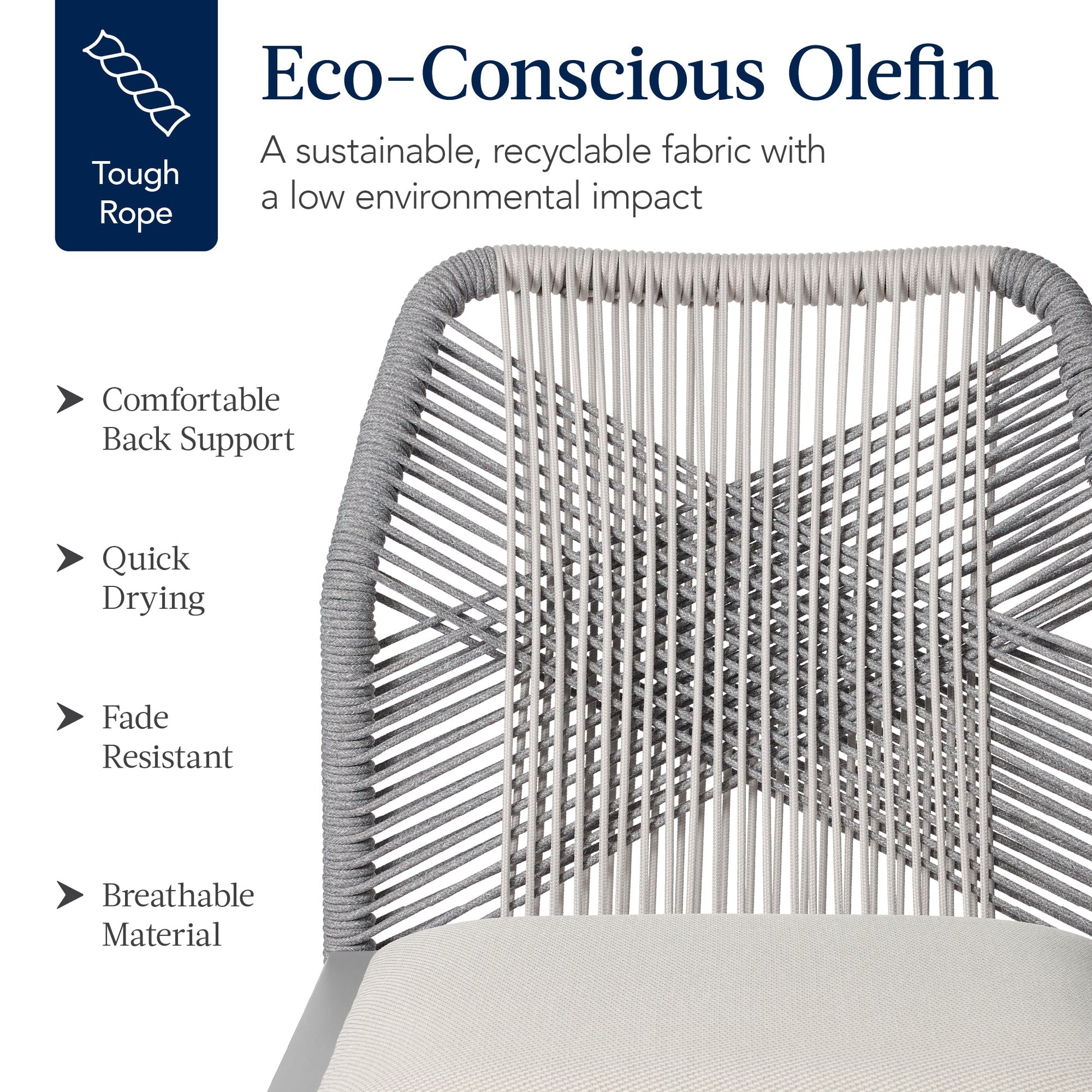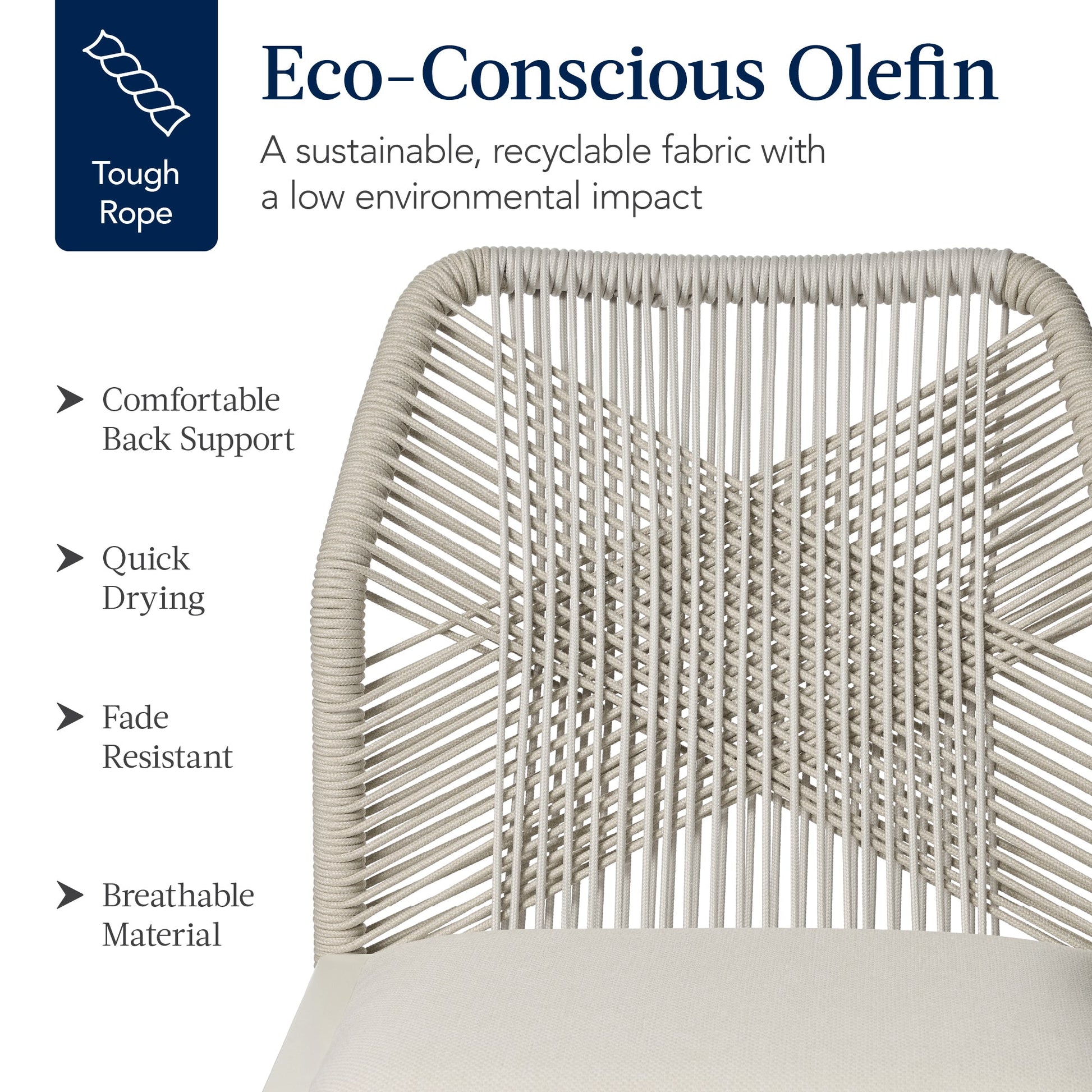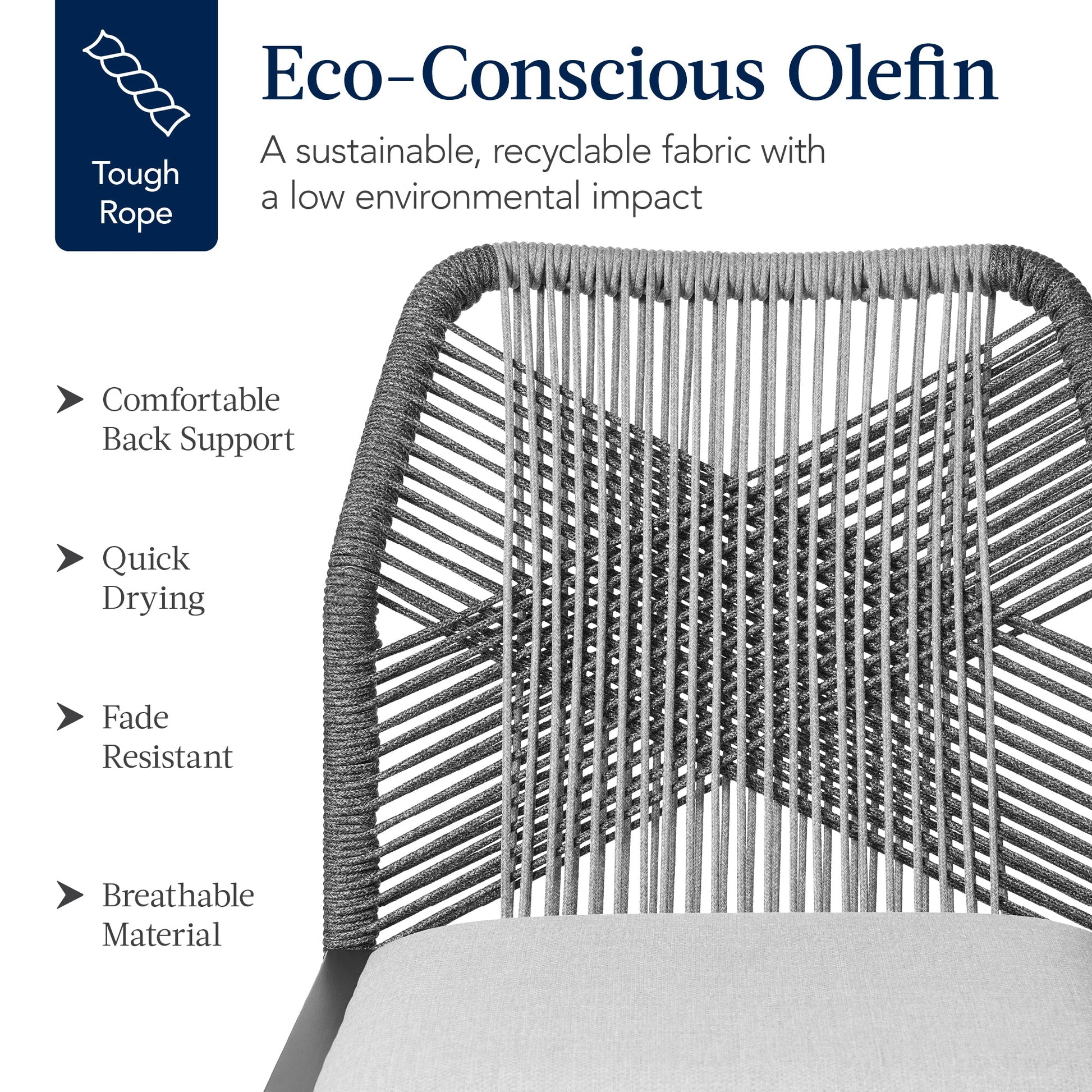 WOVEN ROPE DESIGN: Made with weather-resistant olefin material in a unique "X" pattern, the woven backrest features a gentle curve for enhanced lumbar support, while the built-in footrest helps reduce leg tension while seated