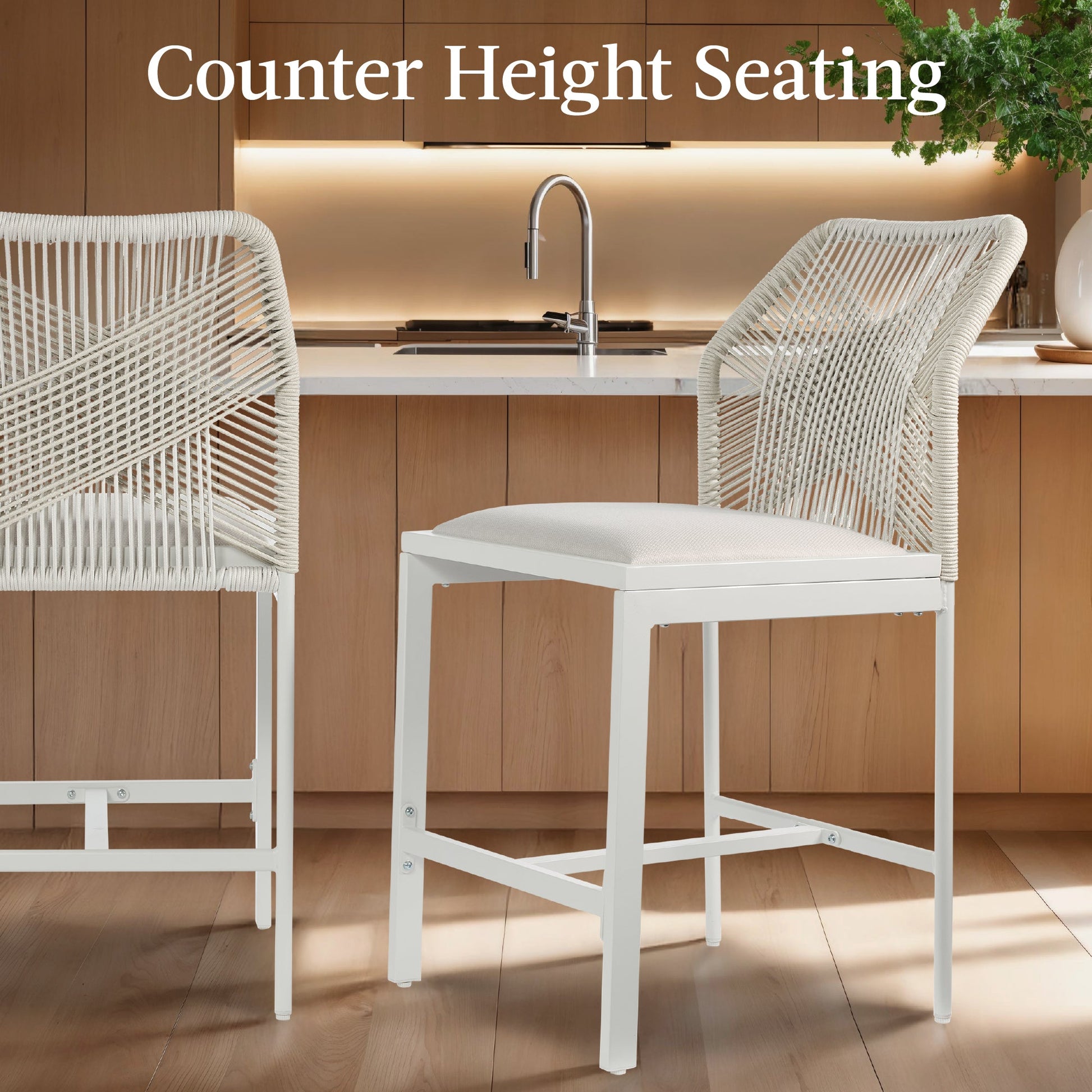 COUNTER HEIGHT BARTSOOLS: These kitchen barstools are designed to fit easily underneath kitchen counters, bars, or high-top tables, maximizing space while providing sleek and functional seating for both indoor and outdoor use