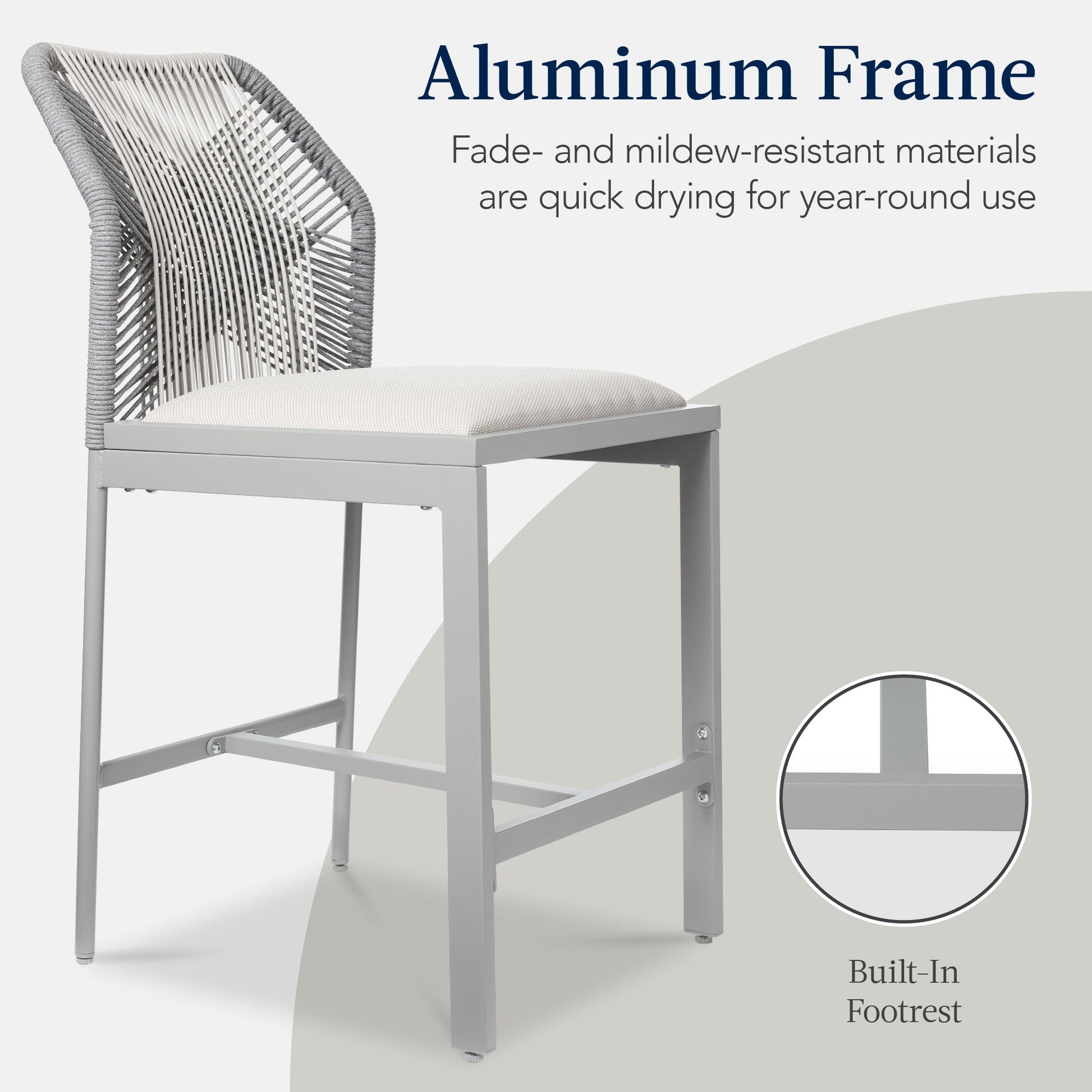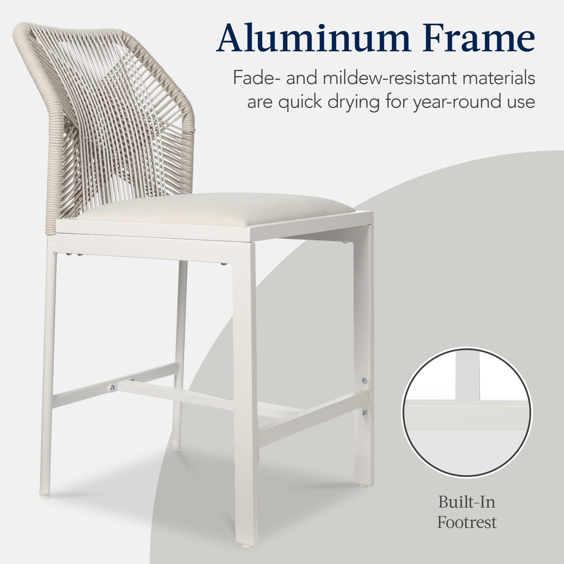SOLID ALUMINUM FRAME: Crafted from durable aluminum, these barstools are designed to resist wet and humid conditions while also being fade-resistant against long-term sunlight exposure, ensuring they withstand all environments