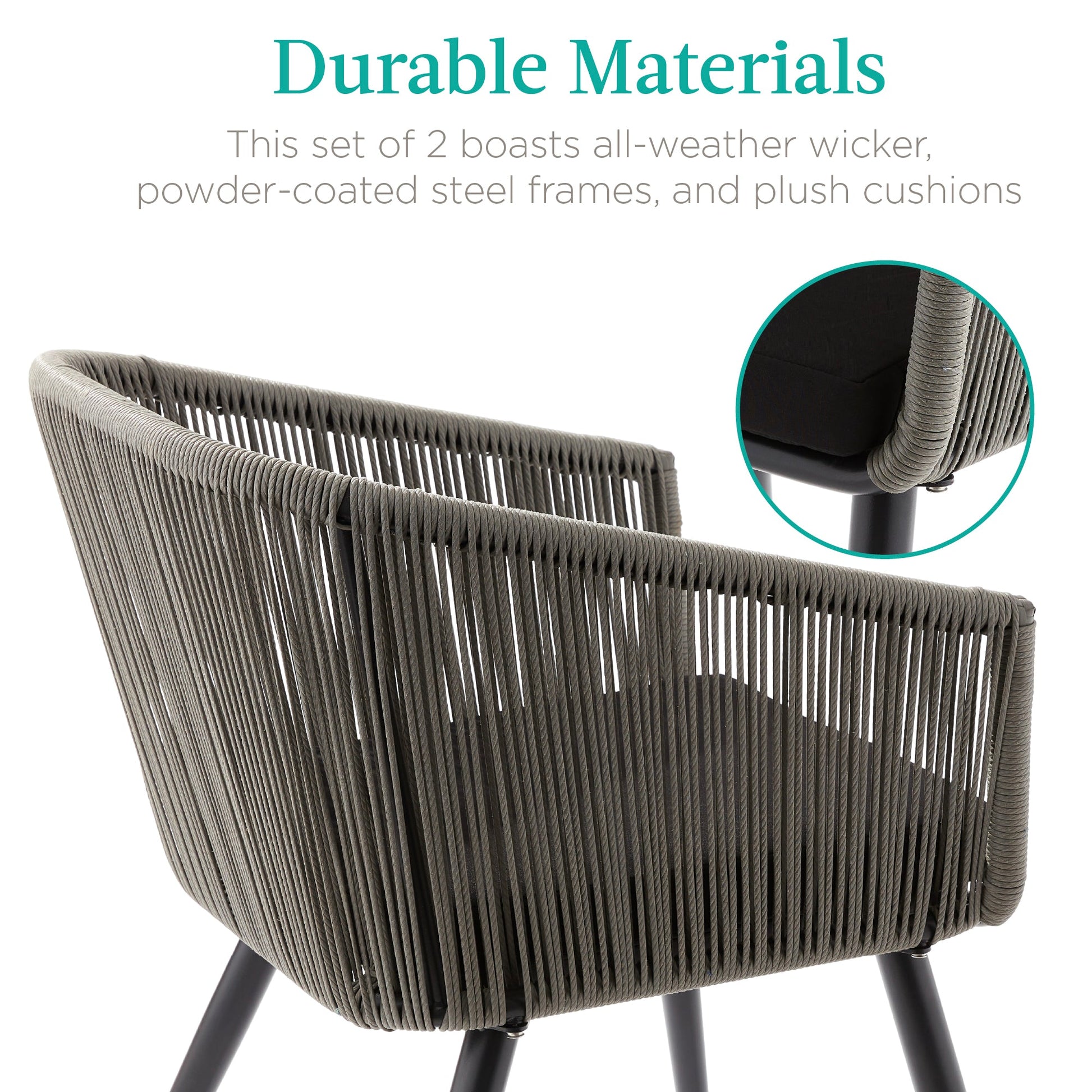 Set of 2 Indoor Outdoor Woven Wicker Patio Dining Chairs, 250lb Capacity