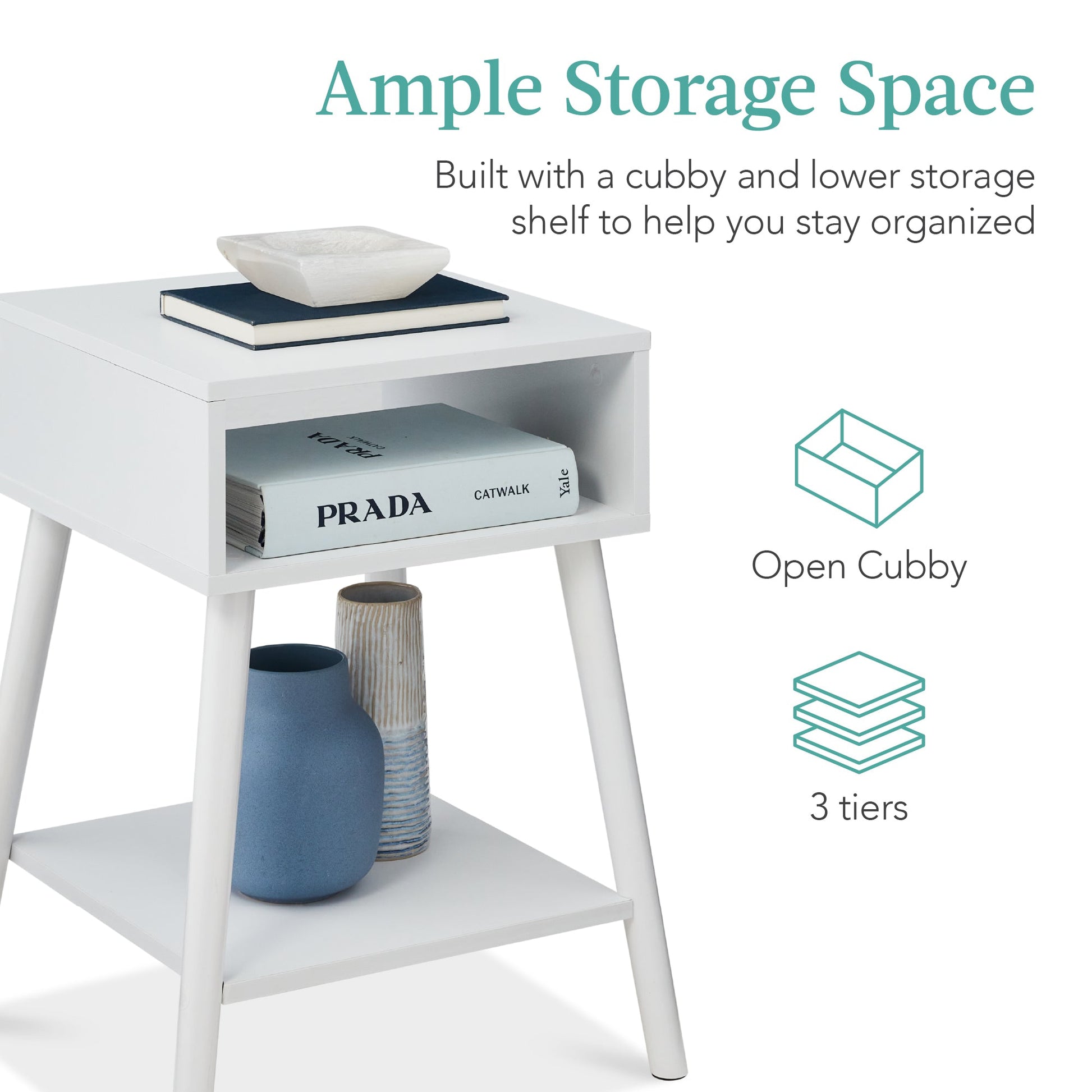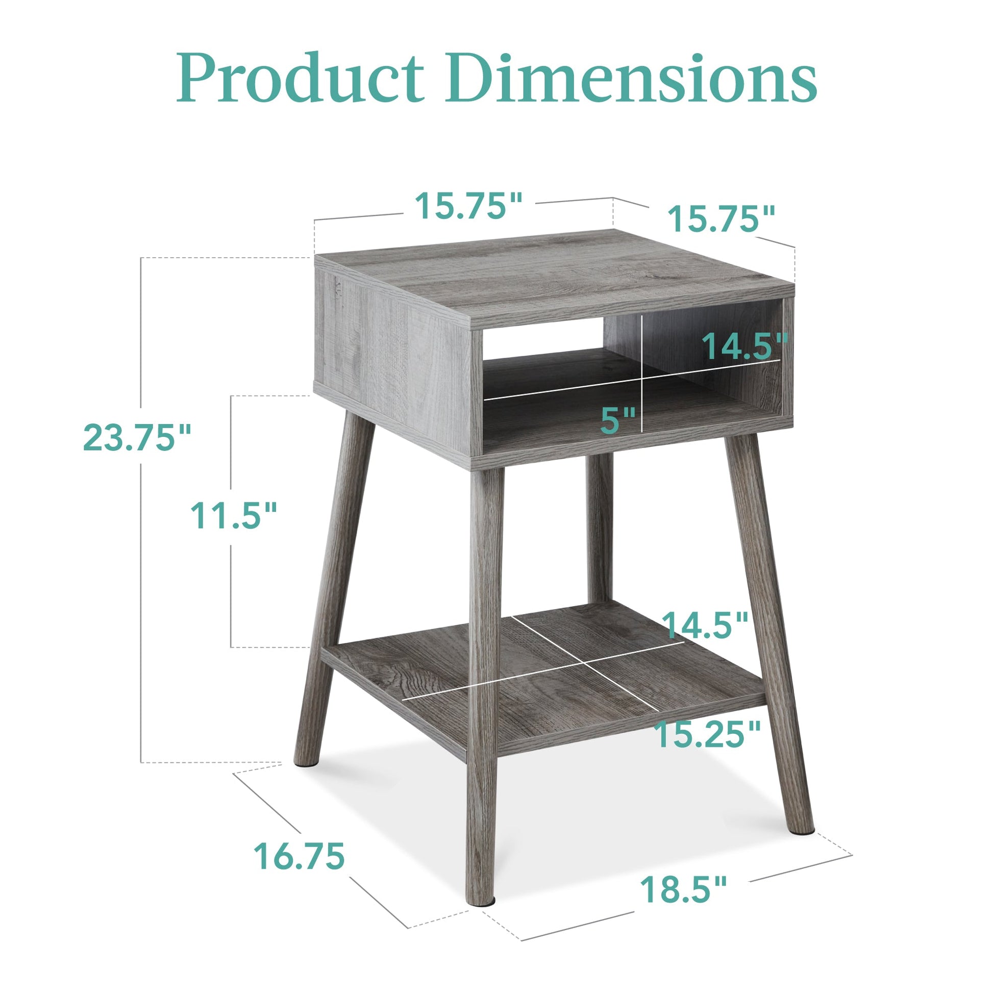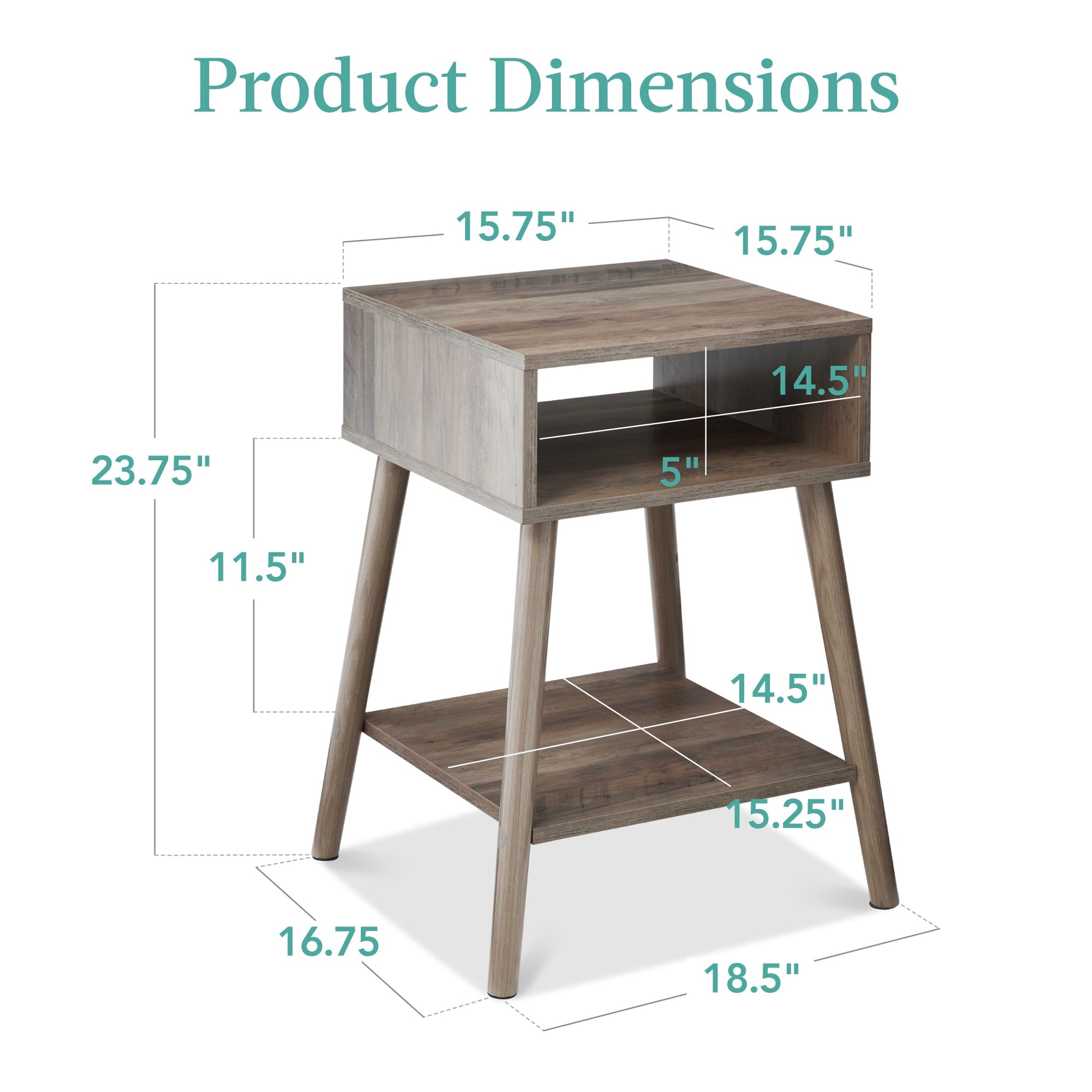 Set of 2 Mid-Century Modern End Tables w/ Cubby, Shelf
