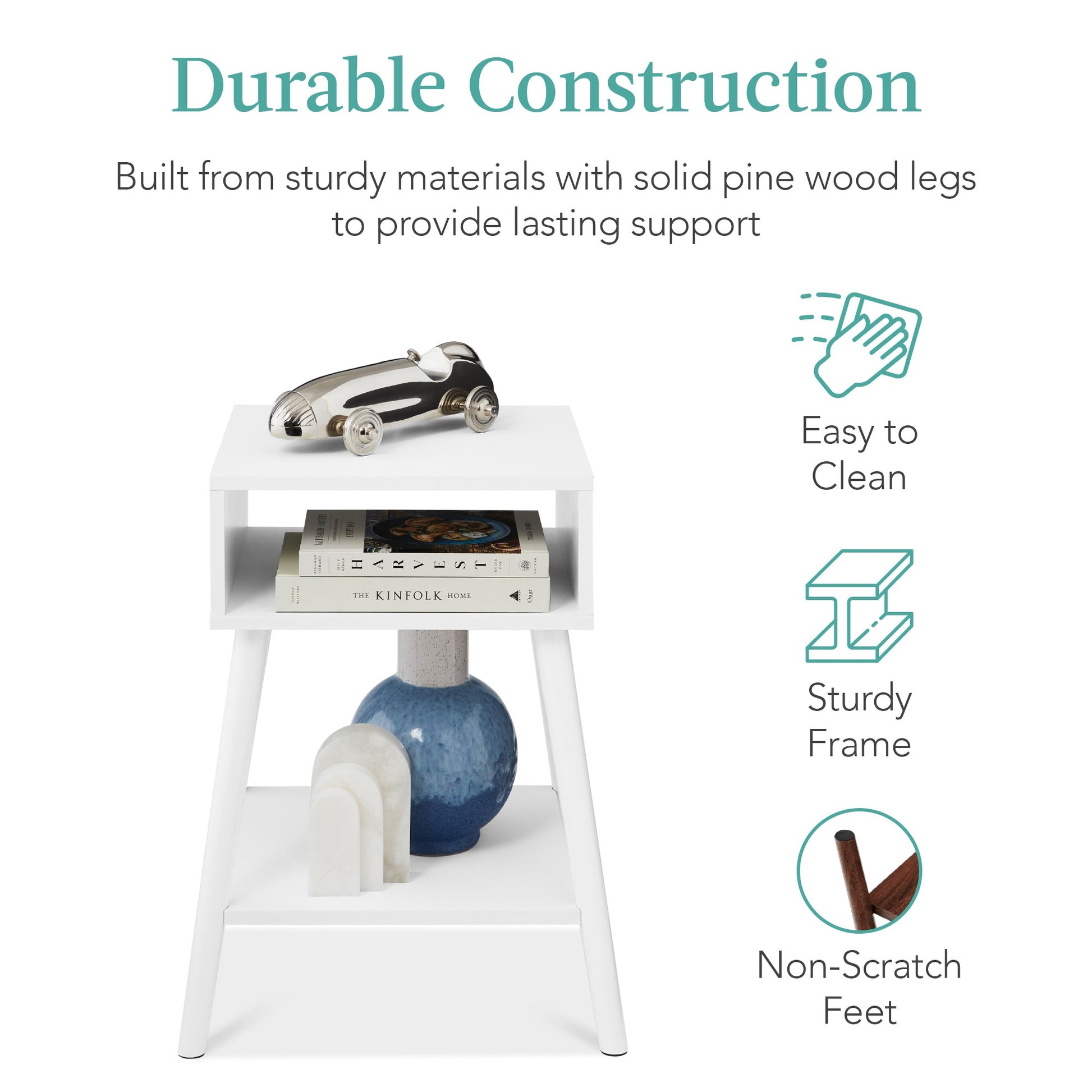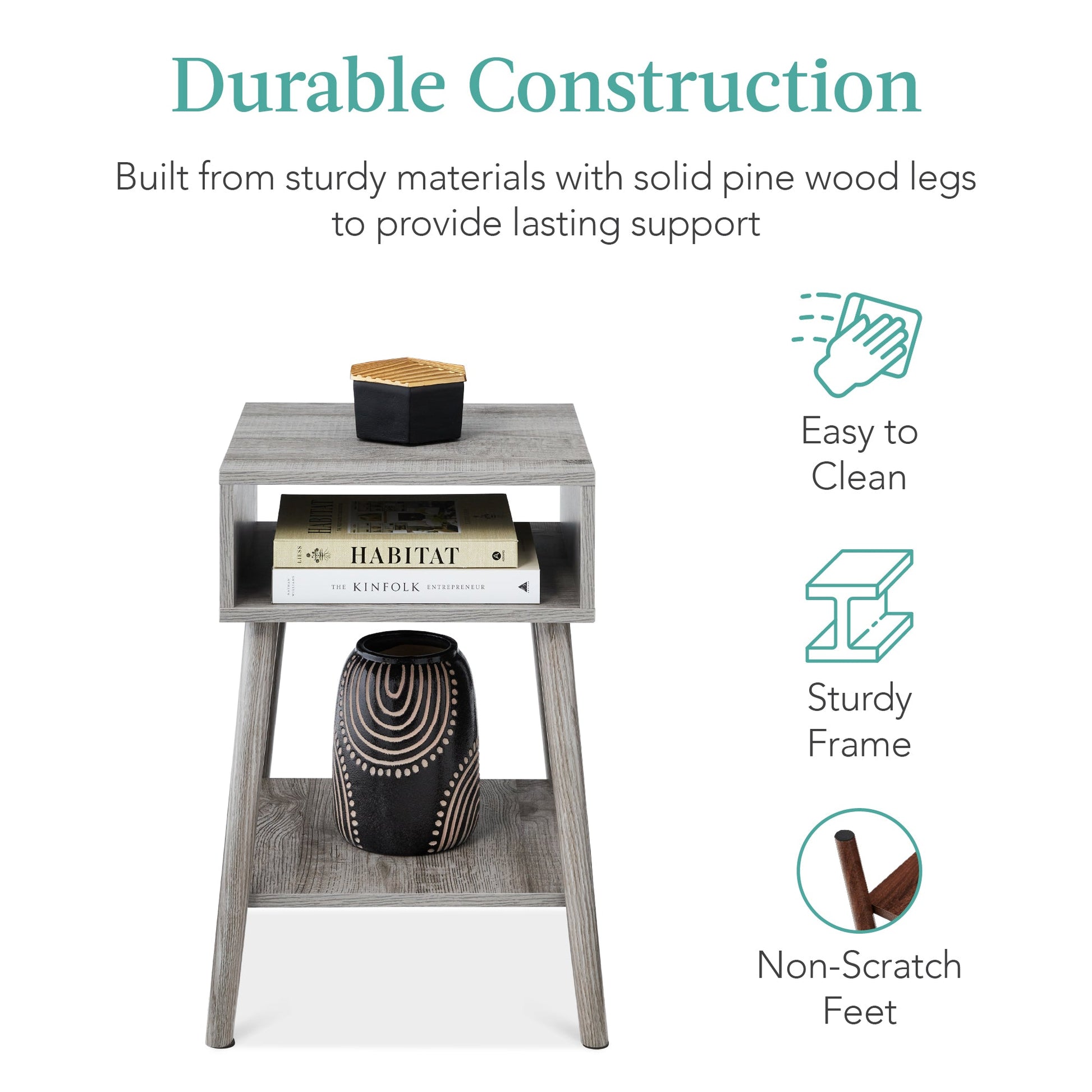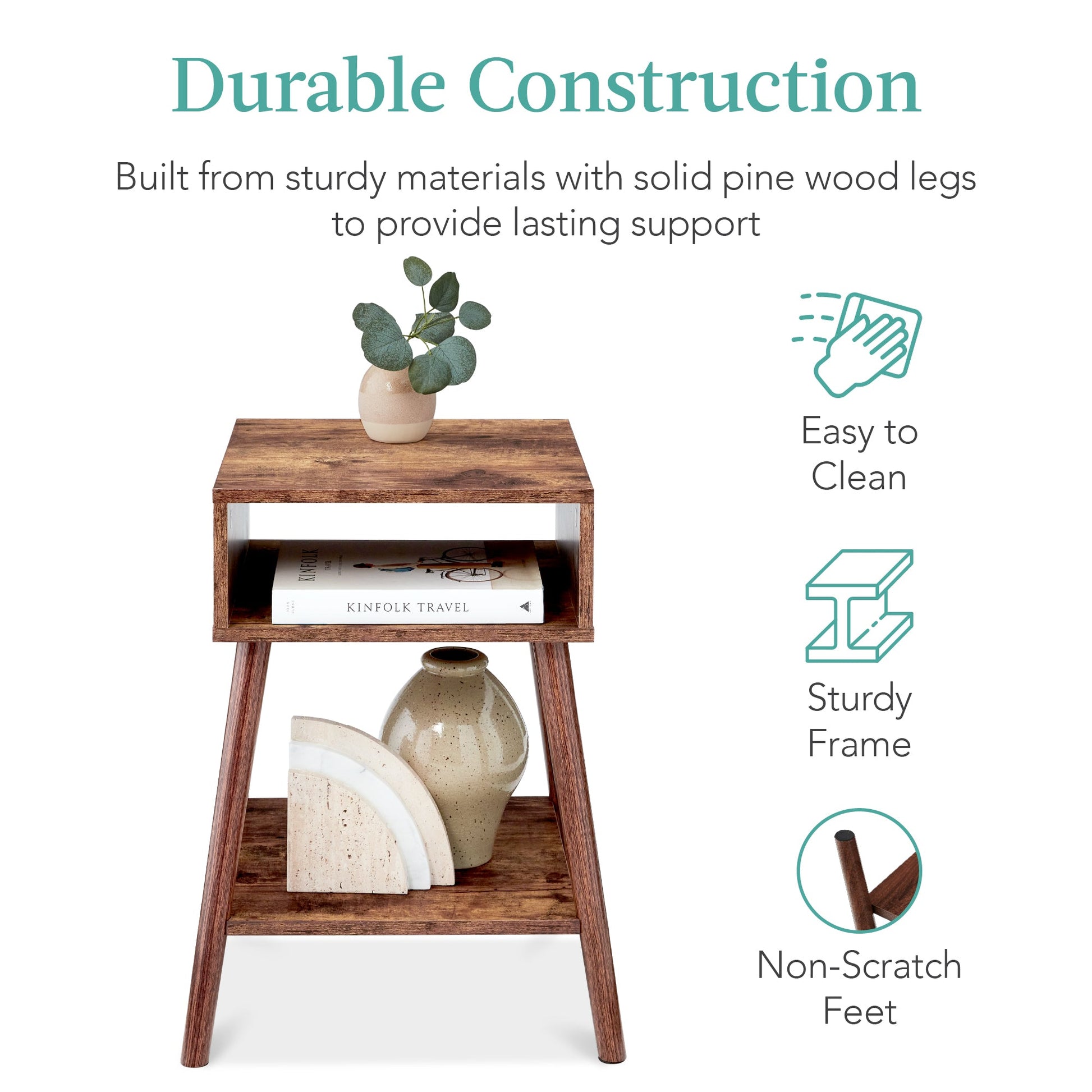 Set of 2 Mid-Century Modern End Tables w/ Cubby, Shelf