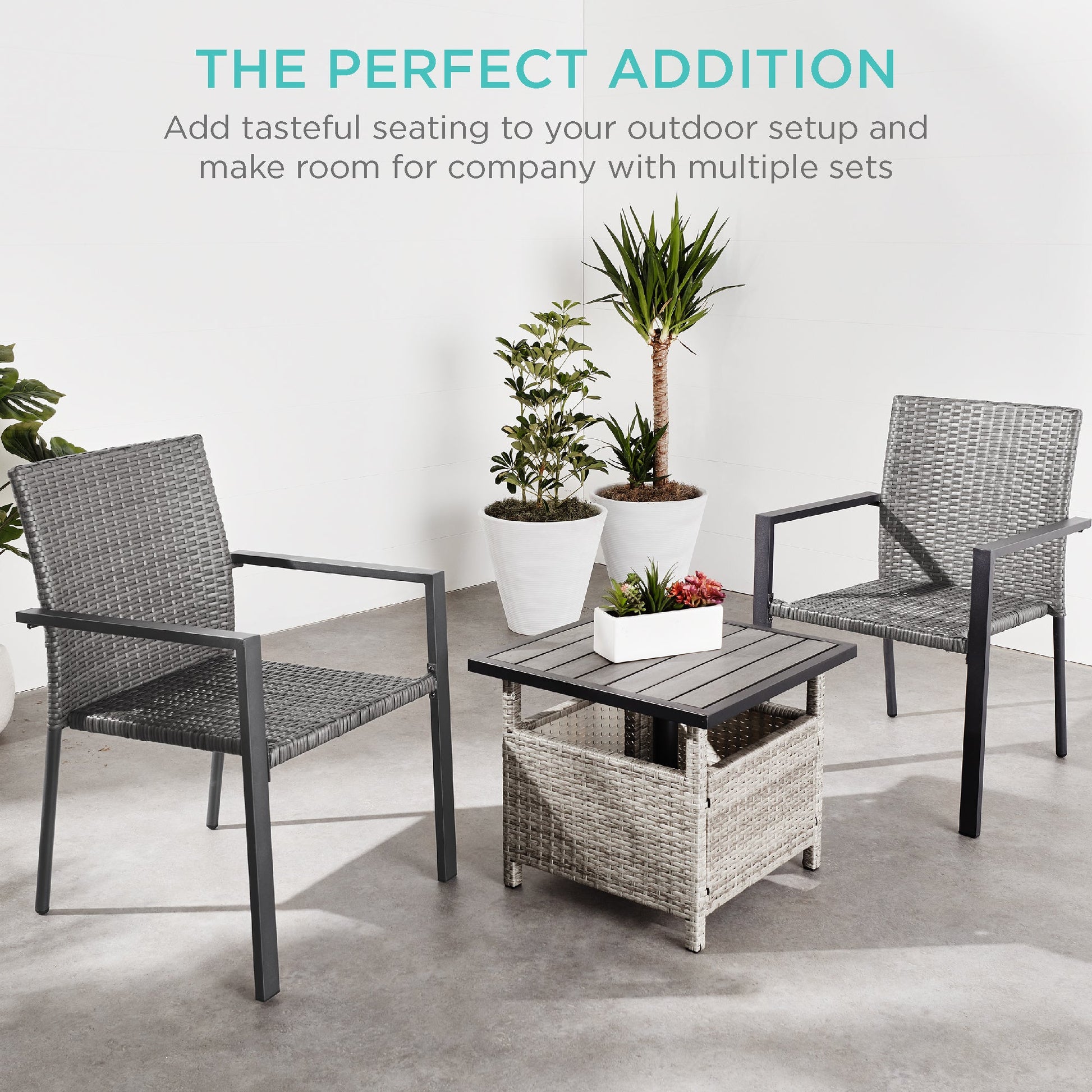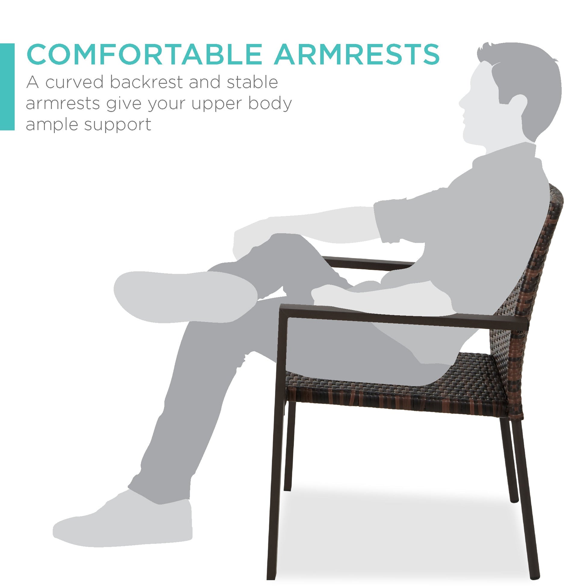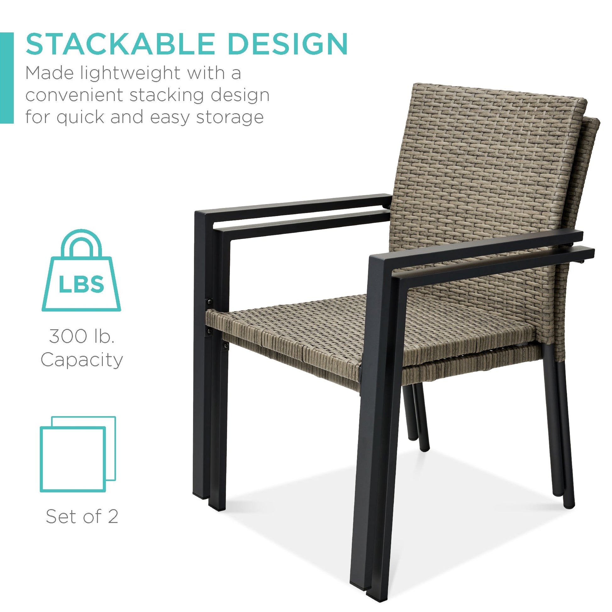 Set of 2 Stackable Wicker Chairs w/ Armrests, Steel Accent Furniture