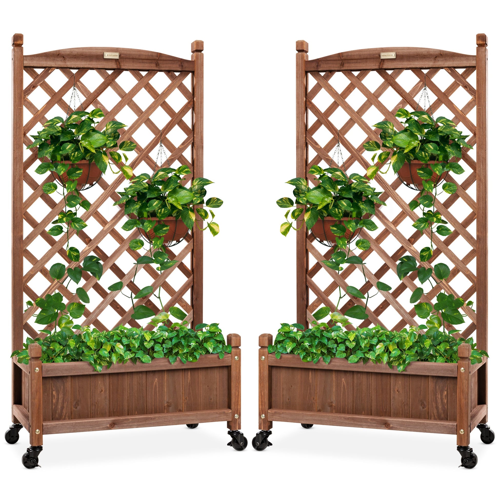 Set of 2 Wood Planter Box & Lattice Trellis w/ Optional Wheels - 48in