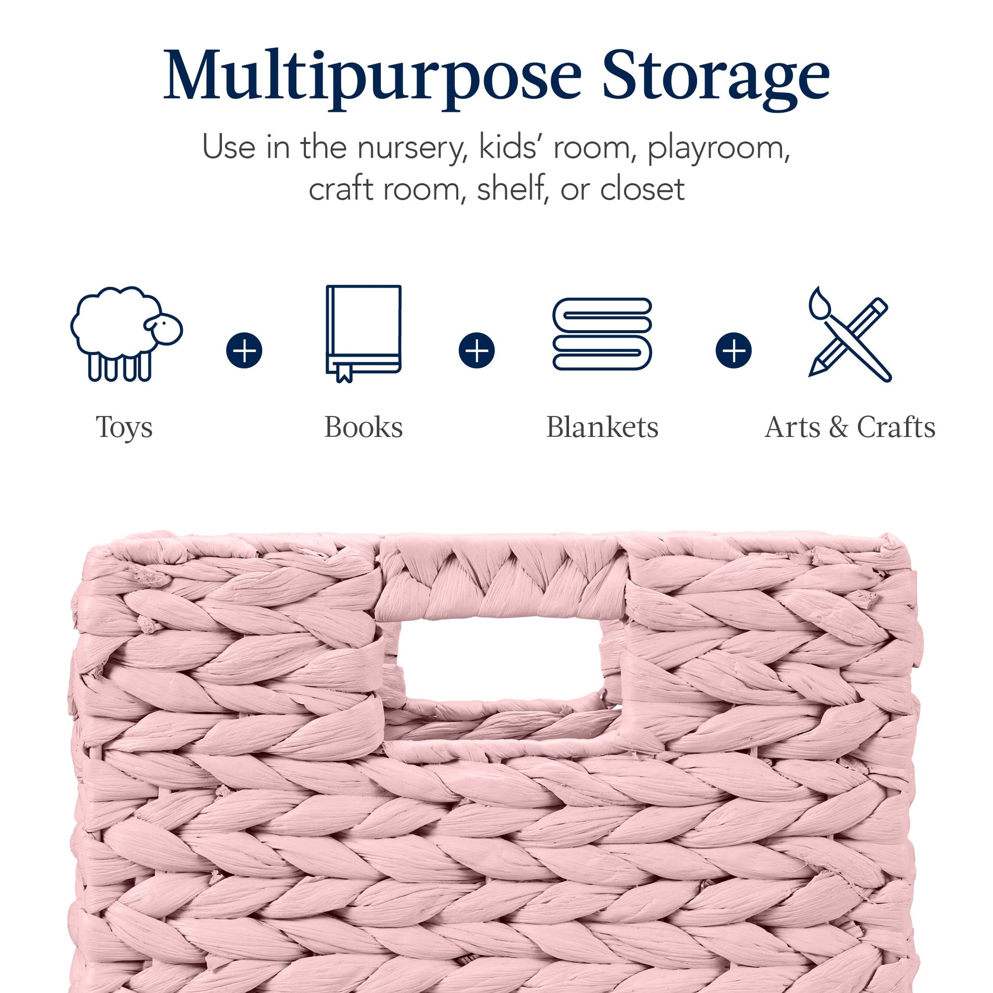 Set of 5 Collapsible Hyacinth Storage Baskets w/ Inserts - 10.5x10.5in