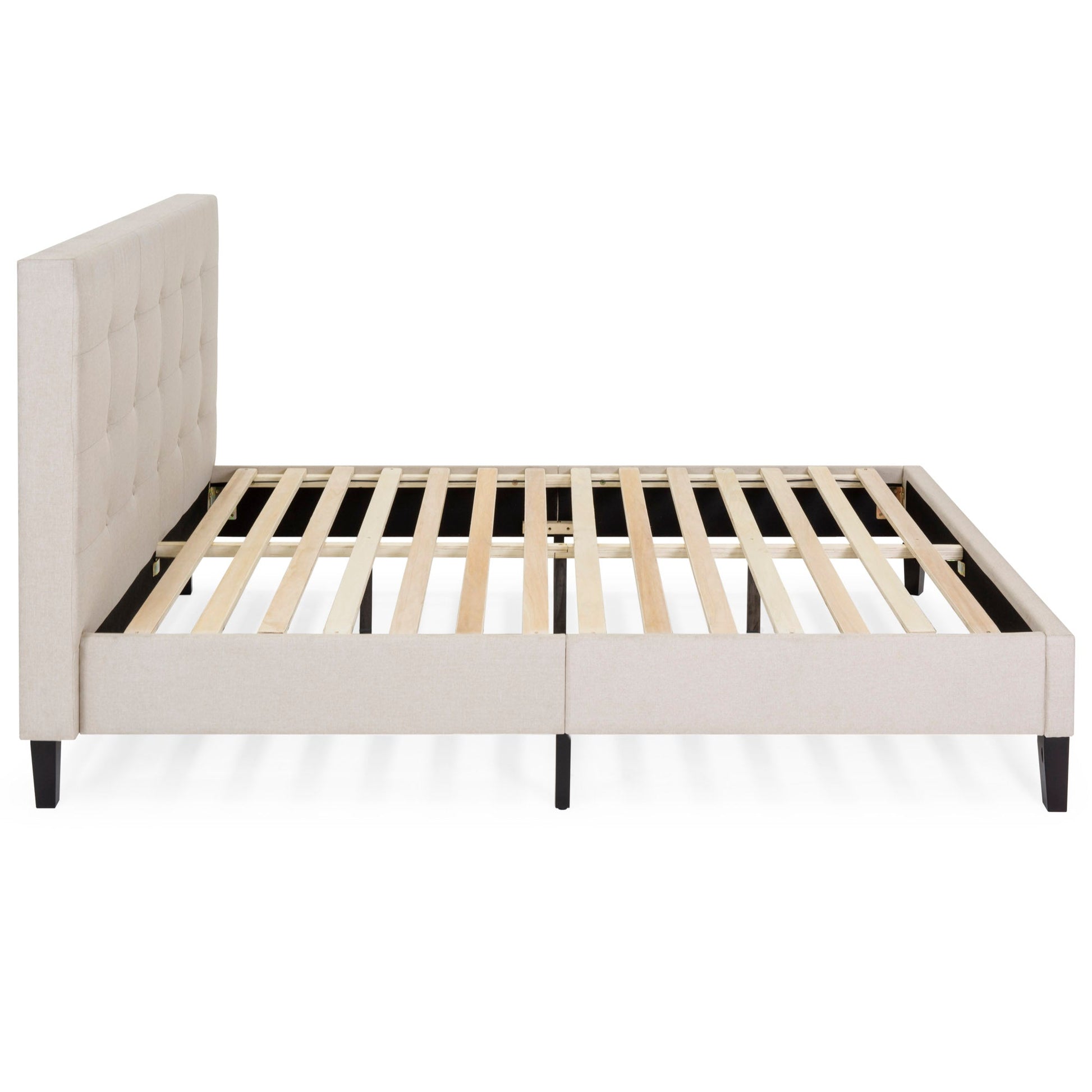 Upholstered Twin Platform Bed w/ Tufted Headboard, Wood Slats