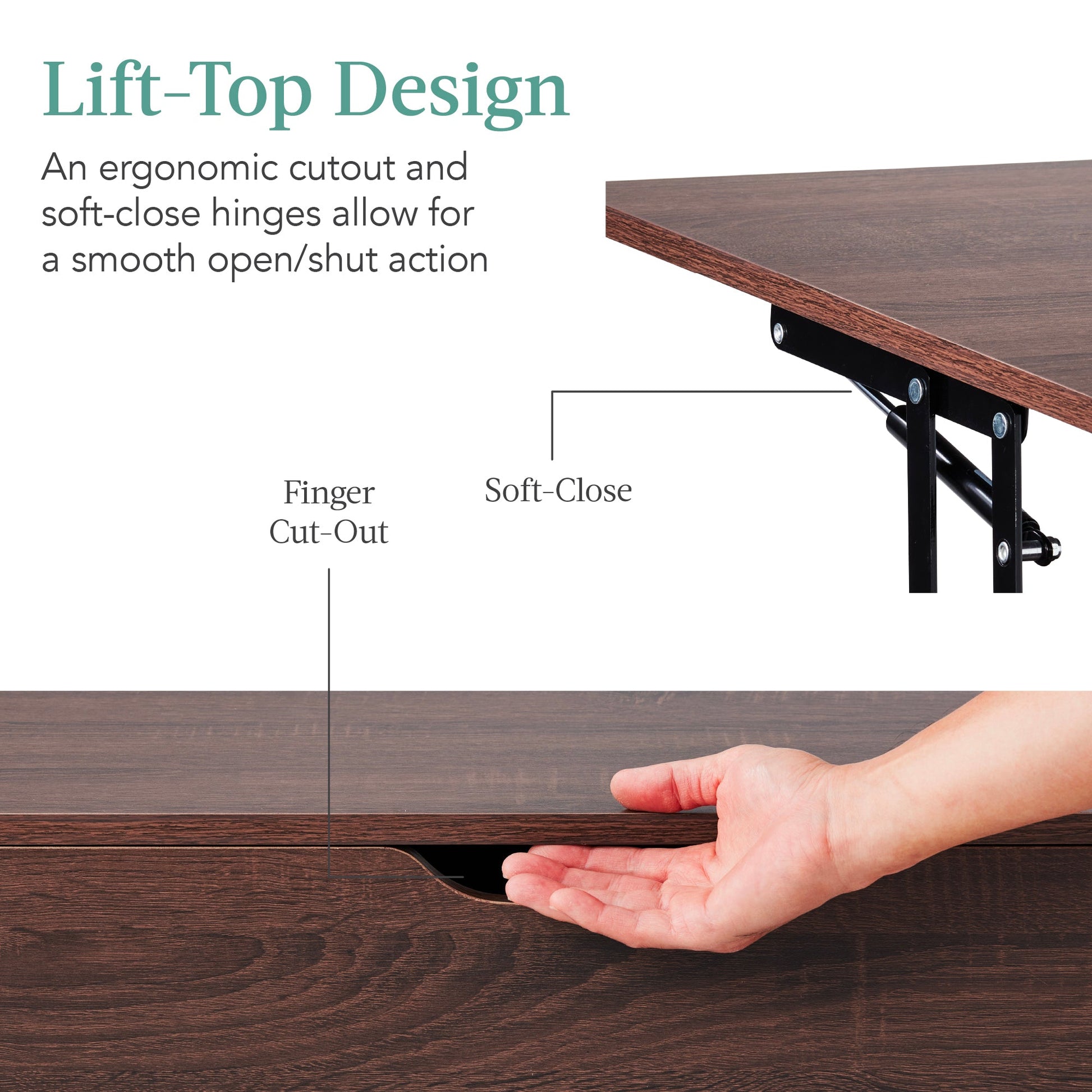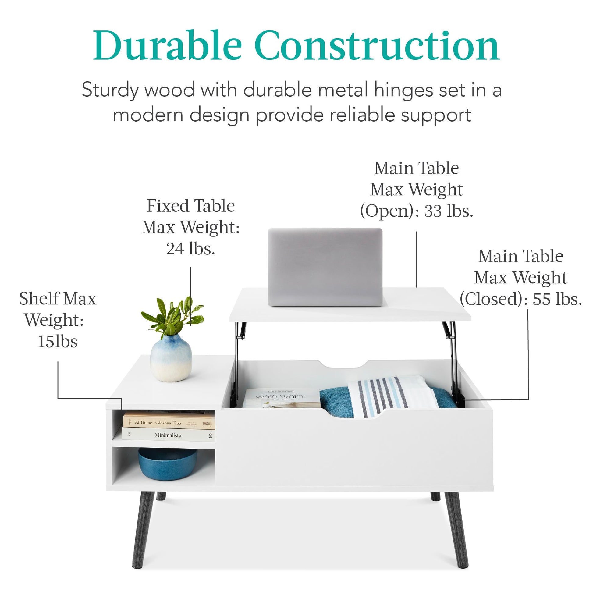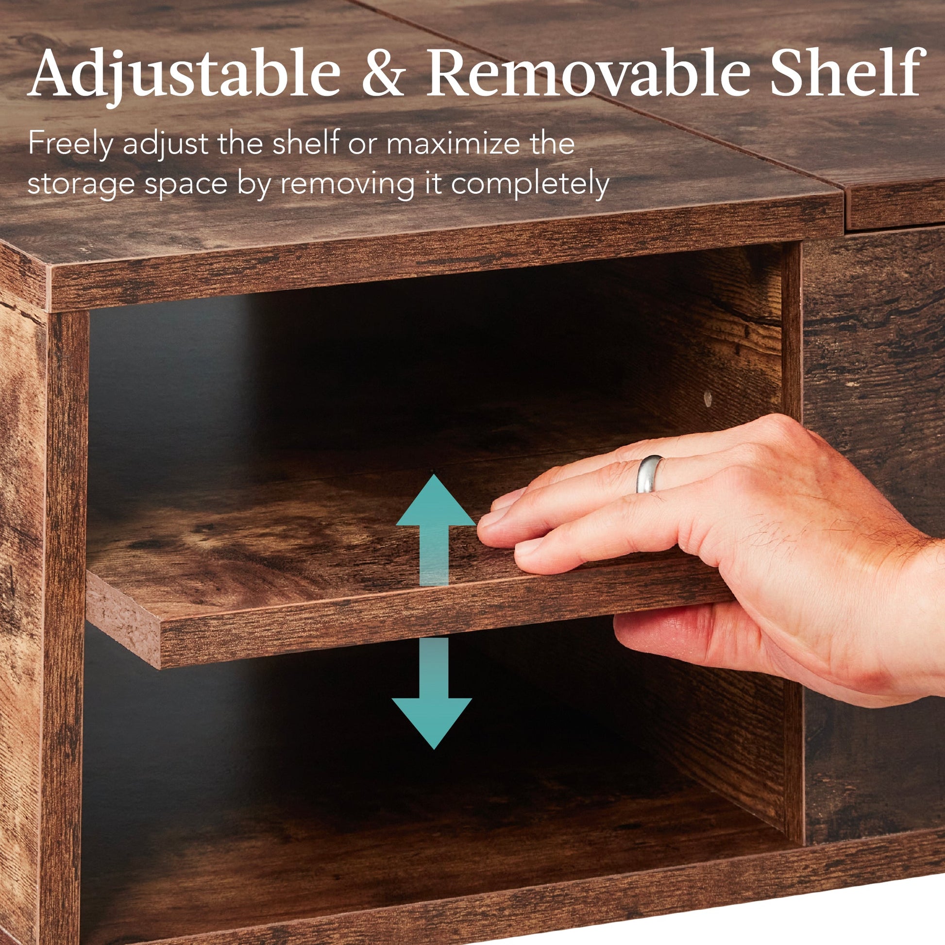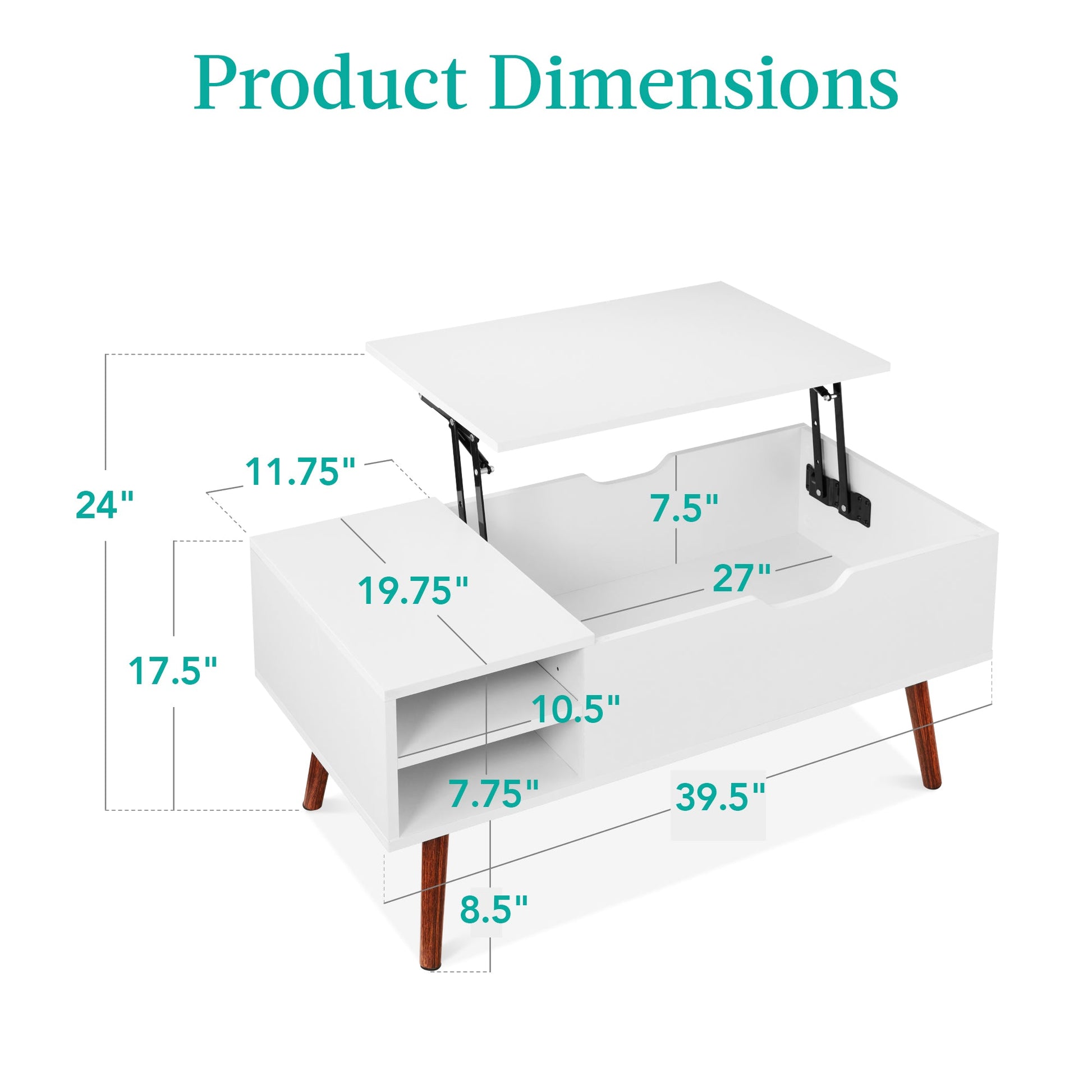 Wooden Mid-Century Modern Lift Top Coffee Table w/ Removable Shelf